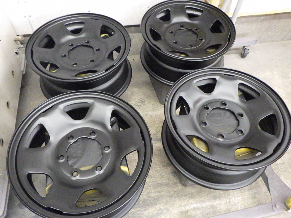 マッドブラックで塗装致しました。お客様のハイエースのボディカラーととてもマッチしてカッコよくなりました。お客様にも満足していただけたのでとても良かったです。お客様でホイールなどを塗装したいなどございましたら